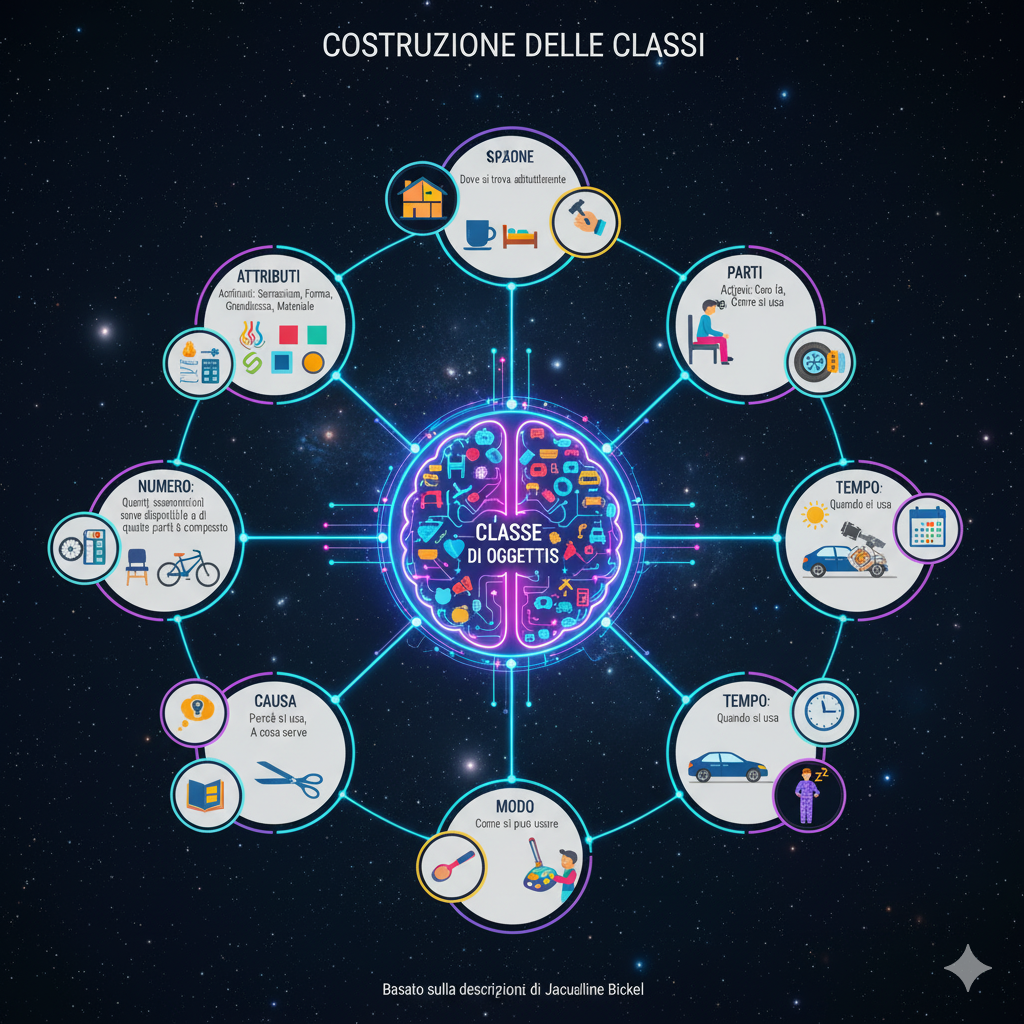 In conclusione, la costruzione di una classe, ben oltre la semplice identificazione di somiglianze superficiali, è un processo di arricchimento concettuale multidimensionale. Attraverso l’esplorazione e la codifica di azioni, parti, attributi, contesto spaziale e temporale, modalità d’uso, cause e aspetti numerici, l’individuo costruisce una rappresentazione olistica e funzionale degli oggetti. Questa ricchezza di relazioni permette non solo di collocare un oggetto in una categoria, ma di comprenderne appieno il significato e il ruolo nel mondo, rendendo la classificazione uno strumento cognitivo potente e indispensabile per la nostra interazione con la realtà.